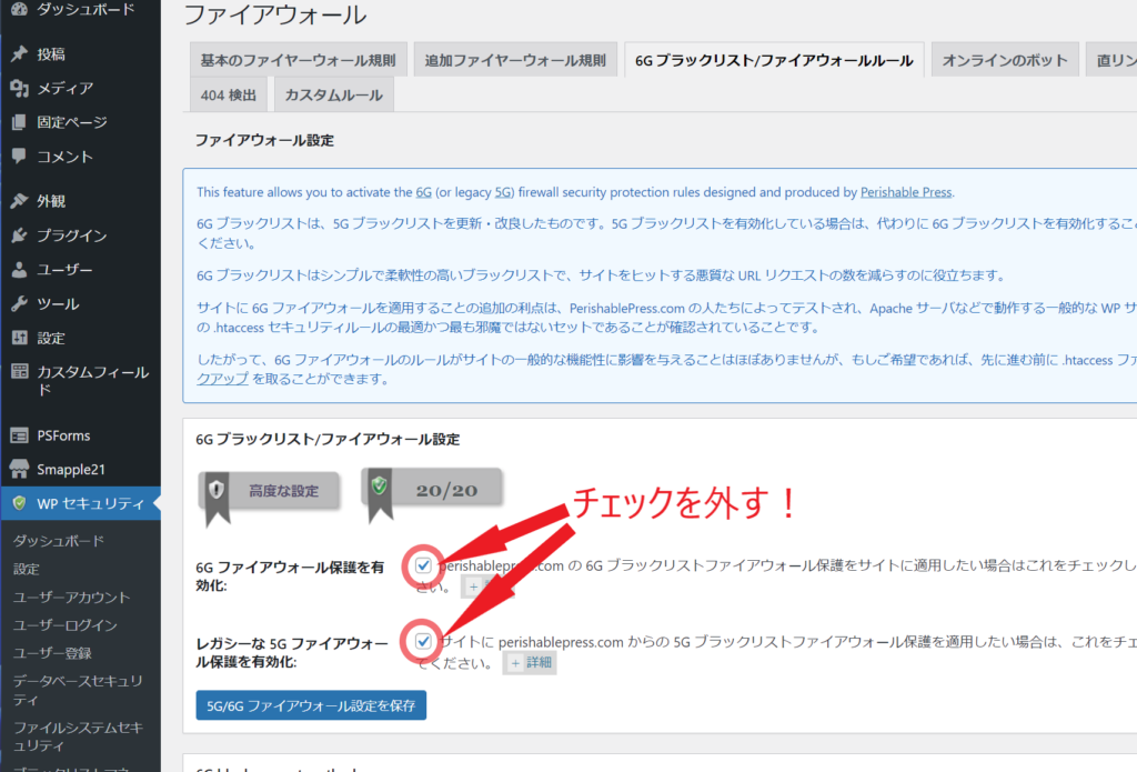 HOMEパソコン駆け込み寺画像の回転ができない(WordPress) 画像の回転ができない(WordPress) 投稿日:2022-09-11 投稿者:PS カテゴリ:パソコン駆け込み寺 タグ: Tips, WordPress WordPress 画像編集画面で「画像の回転」などをしようとすると、エラーになる。 解決策 1. プラグイン All In One WP Security でのファイアーウォールが邪魔している。