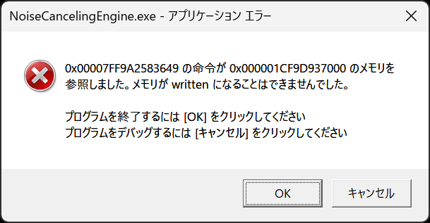 NoiseCancelingEngine.exe – アプリケーションエラー